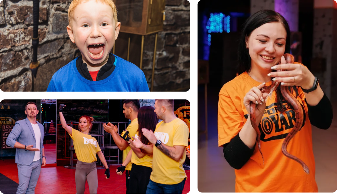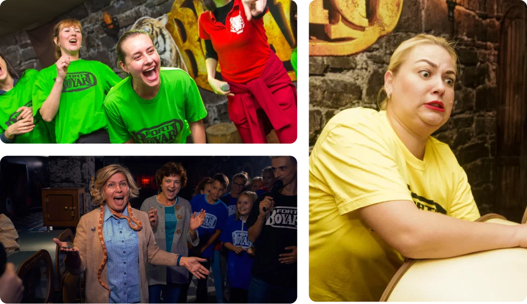 У нас можно получить непередаваемые эмоции и впечатления! Возраст участников от 6 лет, команда участников от 6 человек